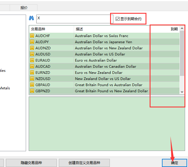 第二步,打开之后,点击显示到期合约,如果合约到期的品种就会显示在小编标记的框框里,最后点击确定就可以了。