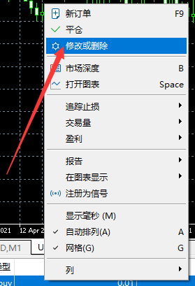 第一步:打开MT5,点击要半平仓的订单,之后点击修改和删除。