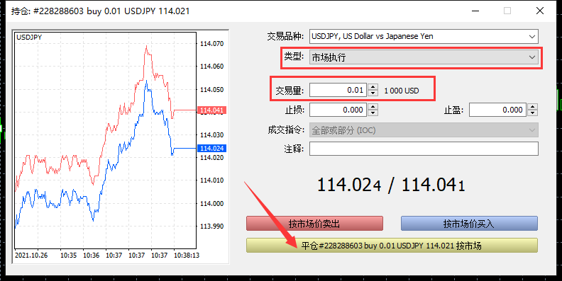 第二步:在如图所示的地方,选择市场执行,之后选择这个订单一半的手数,最后点击平仓就可以了。