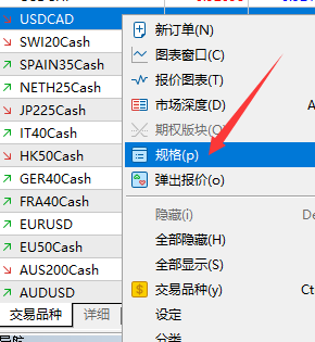 第二步,在品种列表旁单击右键,选择规格。