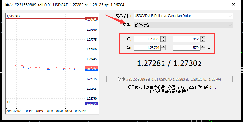 第二步:如图,选择修改持仓,之后大家可以修改自己设置的止损止盈点。