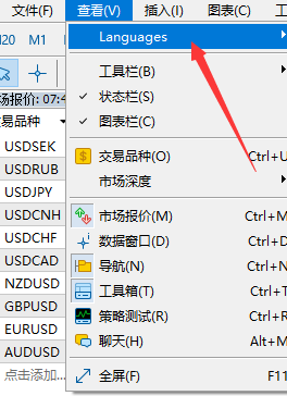 第一步,打开MT5,选择查看,点击Languages。