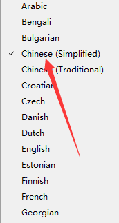 第二步,选择中文,点击图片标记的地方。
