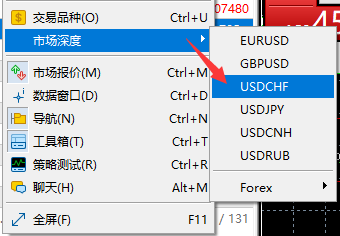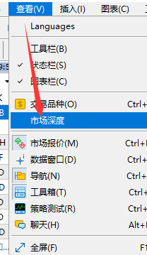 第一步,打开Mt5交易软件,点击查看,选择市场深度。