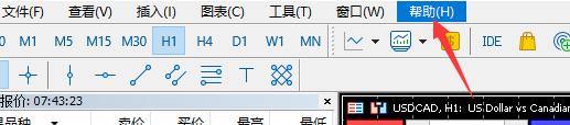 一、首先,打开mt5软件之后,找到上面的“帮助”进行点击。