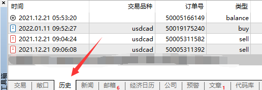第一步:打开Mt5,点击历史。