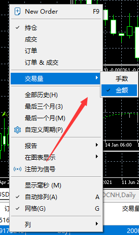 第二步:单击右键,选择交易量,点击金额。
