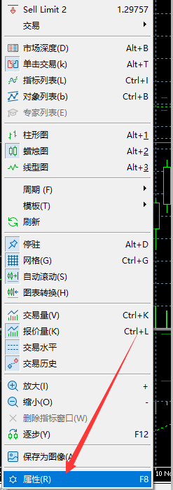 第一步:右击走势图,选择属性。