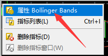 第二步:单击选中布林带指标后,右击,选择属性。