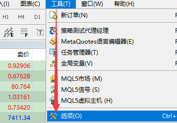 第一步,打开Mt5,单击菜单栏上的"工具",选择"选项"。