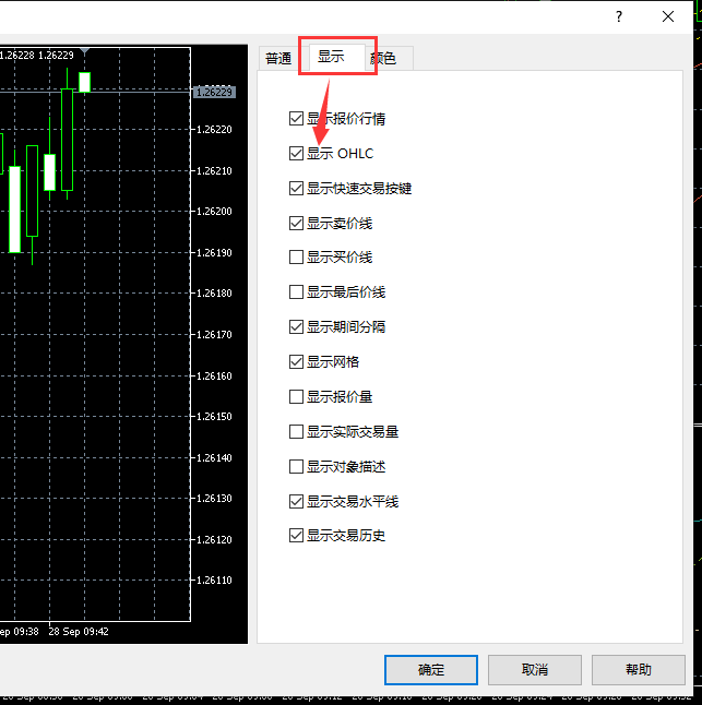 第二步:点击显示,勾选显示OHLC。